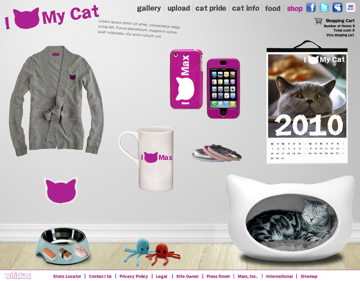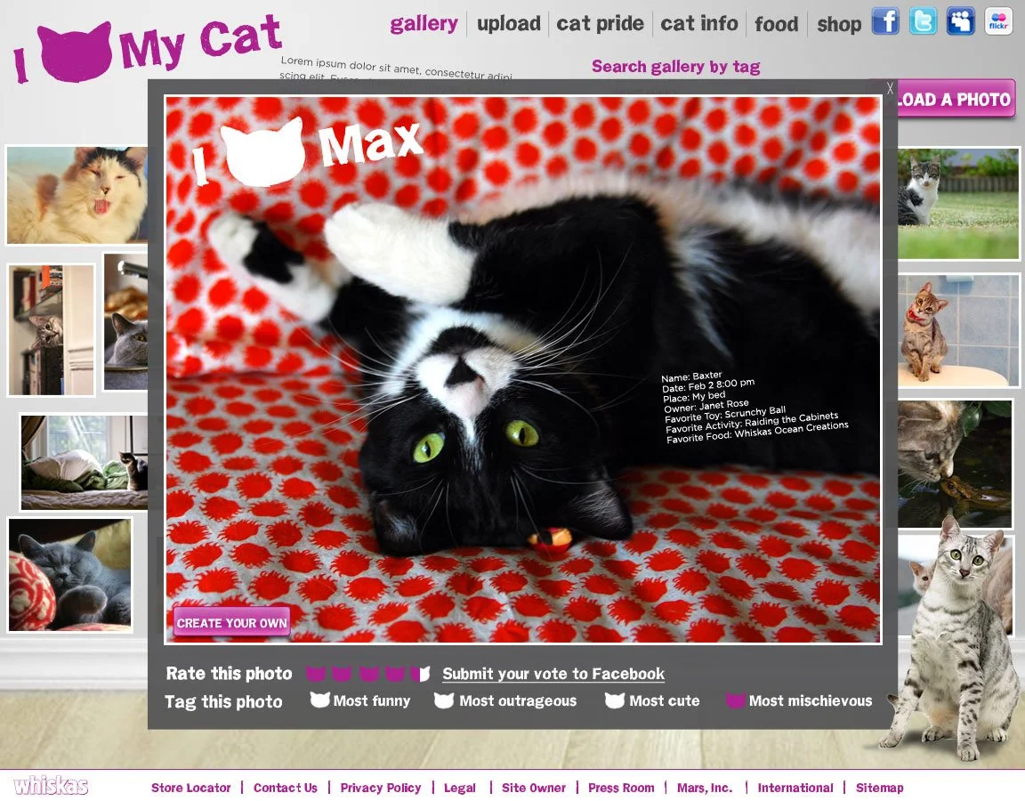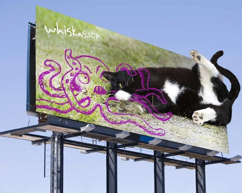 I was the art director on a brand awareness campaign to support the launch of Whiskas in the US market, centered on the universal love of cats. The integrated effort spanned user generated content, a dedicated microsite, outdoor, and an online merch store, building cultural relevance and inviting cat owners to actively participate in the brand story.